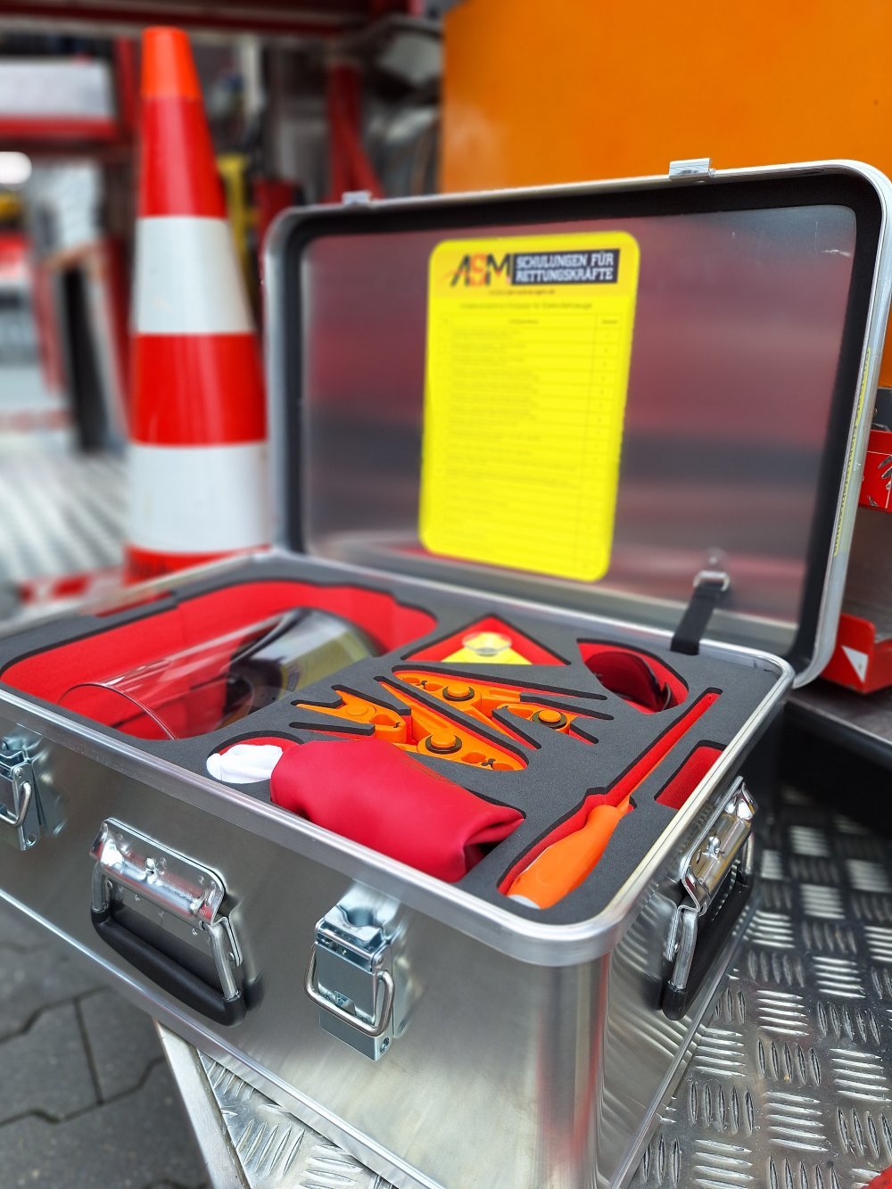 Les outils contenus dans le kit ont été soigneusement sélectionnés et testés afin de garantir une sécurité et une fonctionnalité maximales en cas d’urgence. Cela permet de garantir que, malgré les défis particuliers liés à l’utilisation de véhicules électriques, les mesures de sauvetage puissent être prises le plus rapidement possible et avec une protection complète des secouristes. Le kit d’équipement est donc un excellent moyen d’intervention pour les organisations professionnelles qui sont confrontées à des véhicules à haute tension endommagés et qui ne veulent pas prendre de risques.