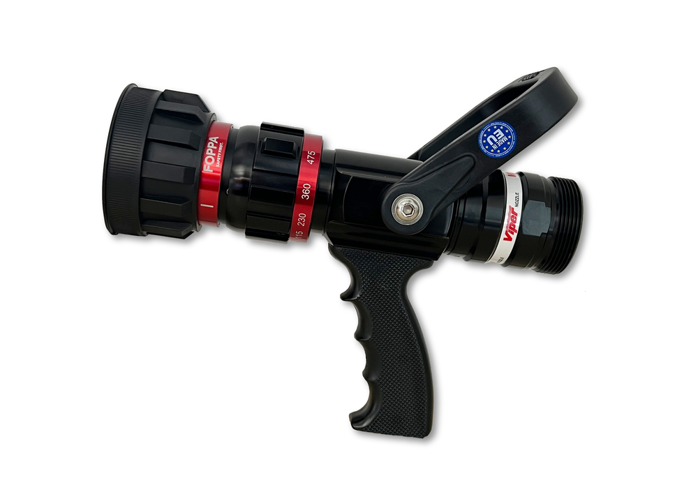 Les lances à jet creux Premium VIPER® Attack perfectionnées dans la version “Foppa – Safety First” ont été dotées de caractéristiques supplémentaires et sont difficilement égalables en termes de fonctionnalité et de qualité. Le système breveté RYLSTATIC® assure une pulvérisation extrêmement fine de l’eau d’extinction, ce qui permet d’obtenir un effet de refroidissement énorme ainsi qu’une efficacité d’extinction immensément élevée. En combinaison avec le destructeur de pression intégré et la vanne à bille bilatérale, les coups de bélier sont réduits de manière fiable, ce qui permet de répondre de manière optimale aux interventions d’extinction professionnelles. En outre, les lances VIPER® by Foppa sont équipées du système Multi-Click, qui offre une sécurité supplémentaire en cas d’incident. En effet, il garantit qu’une commutation involontaire en position “flush” (position de nettoyage) n’est pratiquement plus possible. Ce changement est signalé de manière acoustique et haptique par plusieurs clics, comme lorsque l’on quitte sa voie de circulation sur l’autoroute. Les lances à jet creux haut de gamme de la série VIPER®-Attack convainquent en outre par leur forme robuste et compacte, grâce à l’utilisation de composants de haute qualité et de matériaux ultramodernes, ce qui garantit une grande sécurité en cas de panne. Enfin, l’utilisation simple et intuitive permet de passer rapidement d’une forme de jet à l’autre et d’un débit à l’autre, ce qui permet de réagir individuellement aux différents scénarios d’utilisation.