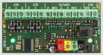 Le module de sortie BUS de JABLOTRON est particulièrement adapté à l’intégration de systèmes d’alarme câblés et de lignes de détection dans la centrale d’alarme JABLOTRON 100 ou 100+. Les quatre entrées et sorties permettent de connecter les détecteurs existants au système et de les alimenter en tension. Les entrées disposent de valeurs de résistance de terminaison réglables et les sorties de sorties isolées galvaniquement (programmables) pour la commande de plusieurs appareils. Le module est attribué à une adresse fixe et occupe quatre positions dans la centrale d’alarme JABLOTRON.