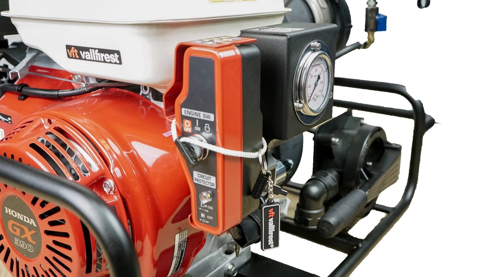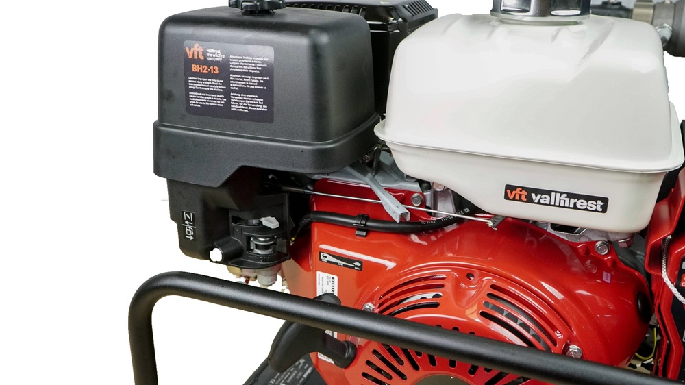 La pompe haute performance Black Hawk 2 de VALLFIREST dans la version BH2-13 fait partie de la dernière génération de systèmes d’extinction portables et performants de construction compacte. Le système extrêmement robuste fait partie des pompes les plus performantes sur le marché grâce à son unité très efficace. Grâce à ses composants en acier inoxydable, la pompe centrifuge à deux étages est extrêmement fiable et durable et permet l’utilisation d’agents moussants. La Black Hawk 2 a été conçue de manière à être aussi légère que possible pour le transport, tout en offrant un maximum de performances. Il est ainsi possible de lutter efficacement contre les incendies, même avec des tuyaux plus longs et au moyen d’un distributeur. Le système d’extinction innovant dispose en outre d’un dispositif d’aspiration manuel qui empêche un fonctionnement à sec et garantit ainsi qu’aucun dommage ne peut survenir en raison d’une surchauffe. La pompe haute performance de VALLFIREST peut également être utilisée comme pompe de transfert ou pompe d’amplification, afin d’assurer l’approvisionnement en eau sur de longues distances.