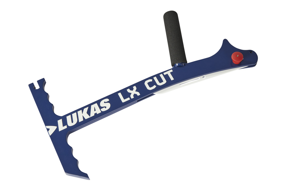 La scie à verre LUKAS LX CUT est une scie spécialement conçue pour la découpe du verre feuilleté de sécurité. Elle est surtout utilisée dans le domaine du sauvetage routier et dispose d’une excellente performance de coupe. La lame de scie fonctionne selon le principe de la traction, ce qui a pour avantage que les éclats de verre sont projetés vers l’extérieur et protègent ainsi les occupants du véhicule. En outre, la lame de scie se replie après utilisation et peut être remplacée en cas d’usure. La LX Cut dispose en outre d’un marteau d’enfoncement dans la poignée en T, qui permet de créer une ouverture pour l’application de la scie. La poignée de guidage est recouverte de plastique afin de garantir un meilleur contrôle lors du sciage et d’éviter tout dérapage.